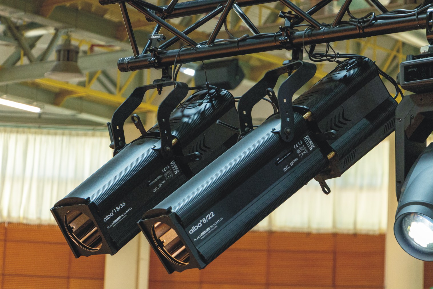 The final rig included 22 Alba F 250 3200K and a total of 16 profiles, spread between Alba 8/22 and 18/36 which ensure an even lighting coverage both on stage and in the house, while a Varilite FLX S48 console with DMX splitters was chosen to manage the entire setup with a precise and reliable control of each single fixture.